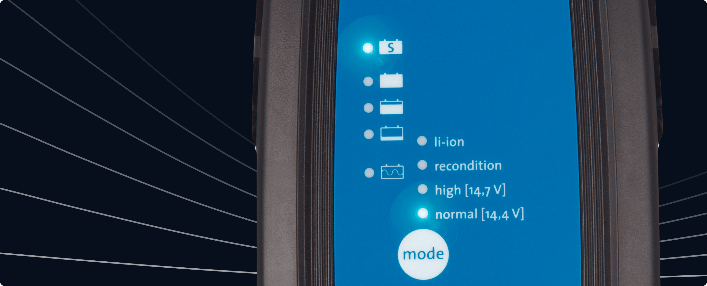 De Blue Smart Charger is ontworpen voor betrouwbaarheid in alle omstandigheden en is voorzien van IP65-bescherming tegen water, stof en chemicaliën, plus uitgebreide bescherming tegen overtemperatuur, kortsluiting en omgekeerde polariteit.