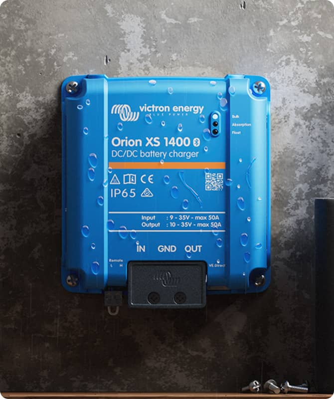 De Orion XS is robuust, compact en ventilatorloos en gemaakt voor het leven aan boord. Hij levert efficiënt DC-DC-laden in krappe machinekamers, ondersteunt meerdere accubanken en biedt 12/24V-conversie met het XS 1400-model.